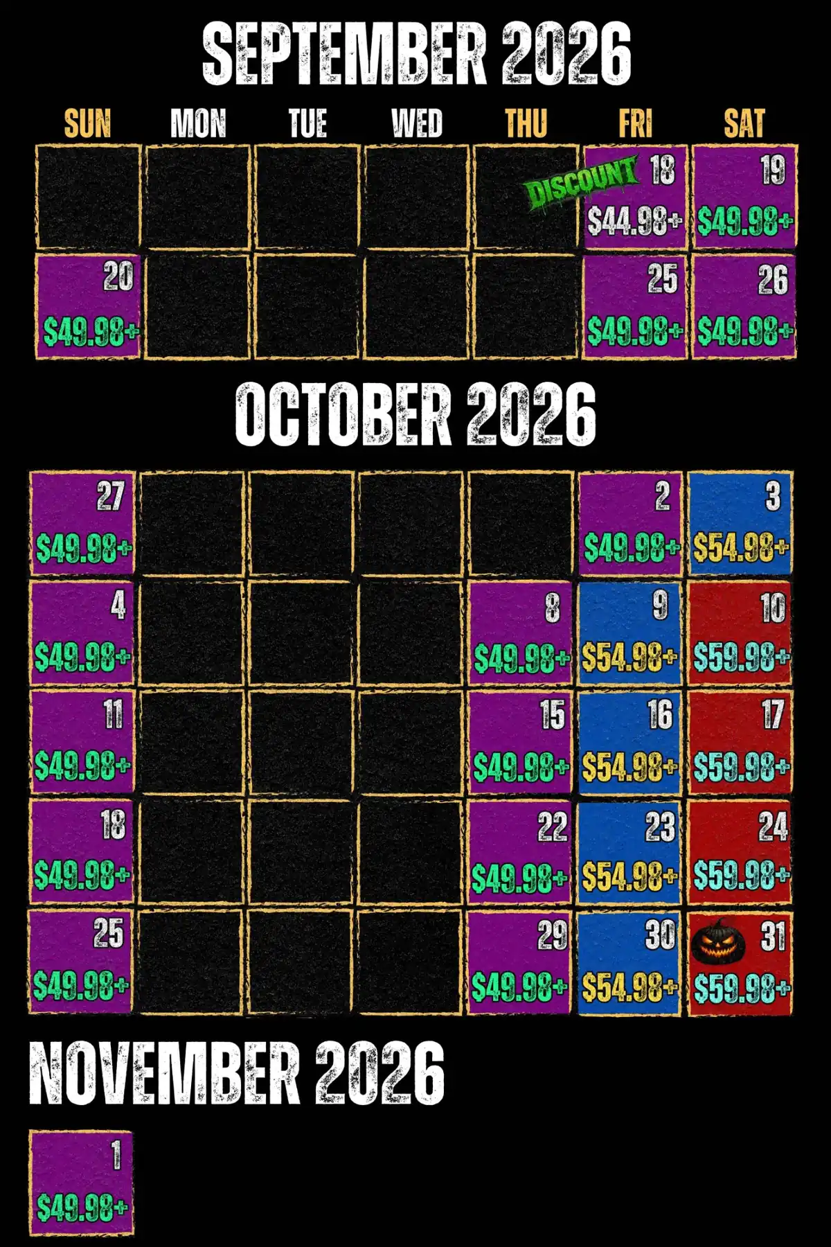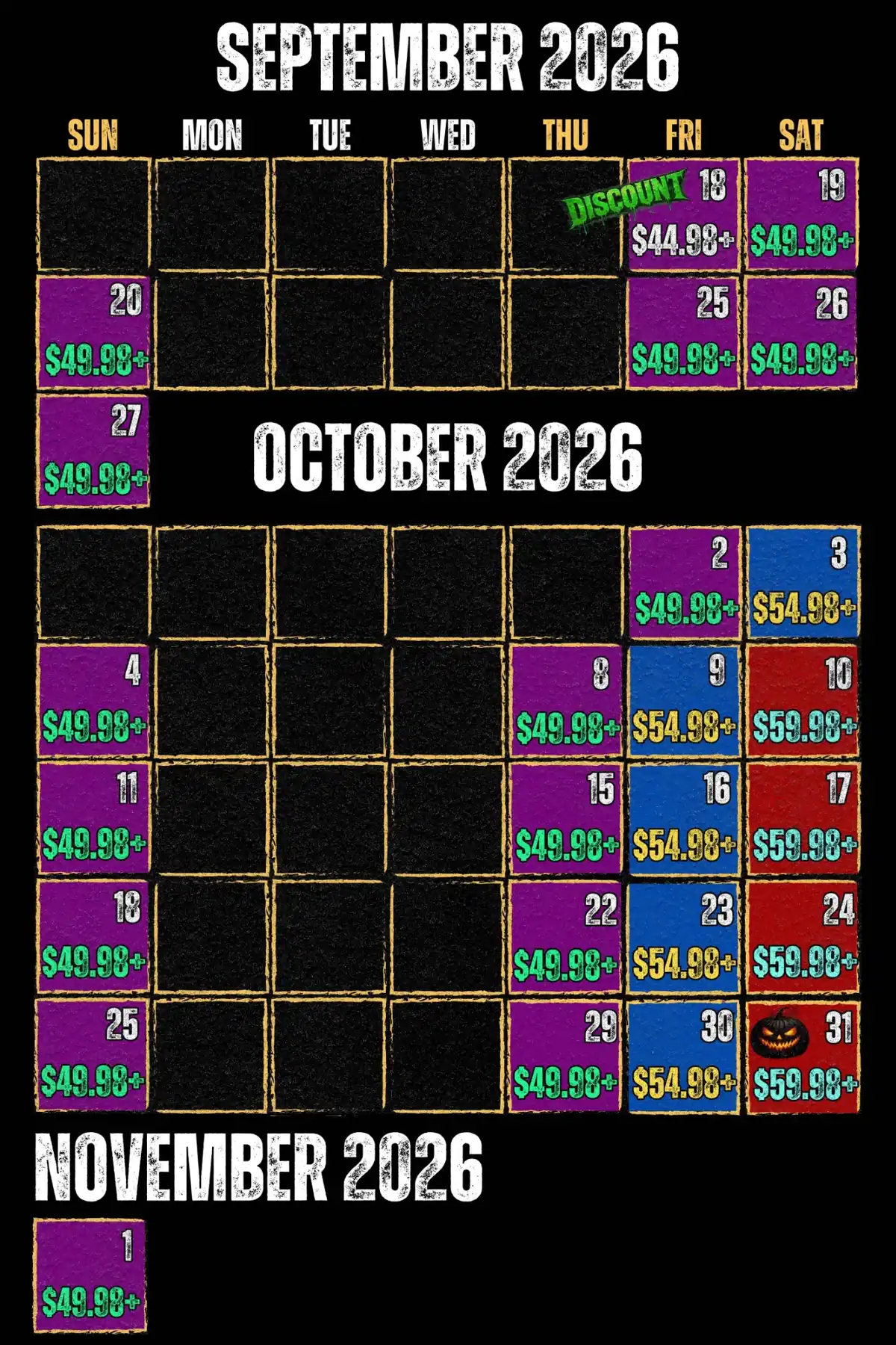 DISCOUNTED OPENING NIGHT: SEPTEMBER 18TH (ONLY $44.98+ ONLINE)